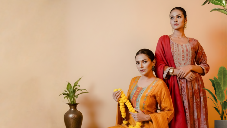 Get ready to turn heads in this stunning Anarkali Salwar Set! Bursting with a gorgeous print that tells its own story, this ensemble pairs vibrant design with tasteful embroidery accents...